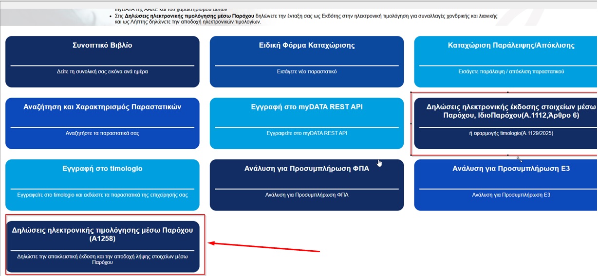 Ενημέρωση για λογιστή: Εαν δεν υπάρχει δήλωση σε καμία από τις δυο επιλογές παρακάτω (Δηλώσεις ηλεκτρονικής έκδοσης) παρακαλώ επικοινωνήστε με το τμήμα πωλήσεων της εταιρείας μας στο 212 000 2329.